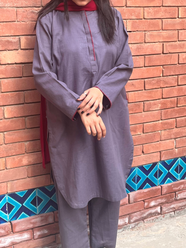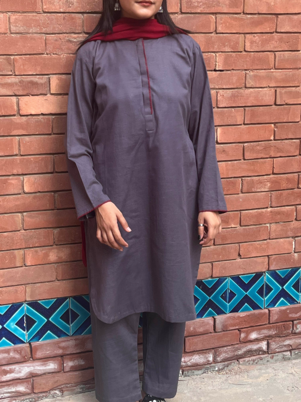 Top: Straight kurta with a rounded hemline, minimal front placket, and subtle detailing.
